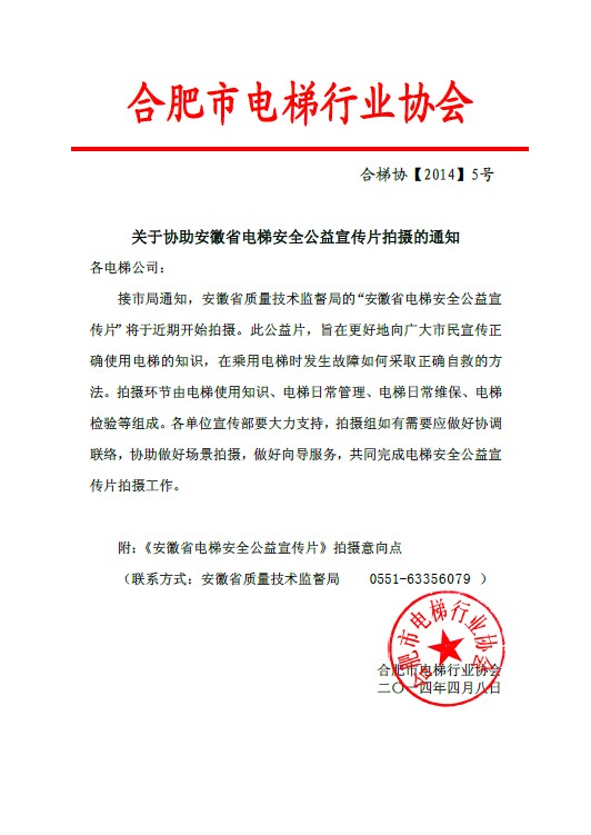 协助电梯安全公益片拍摄的通知