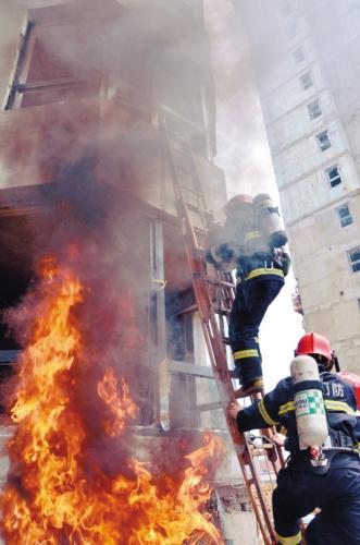 “着火啦,着火啦!”上午10时许,中南世纪城小区,一栋高层建筑突然“着起了大火”。小区保安迅速行动,他们冲进“着火”的大楼协助疏散群众。