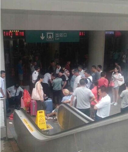 8月10日17点左右,网友@白羊座青年 在微博上发消息称,“16时35分,济南火车站出站口西侧电梯出现故障,事故造成6名乘客不同程度受伤。事故发生后,济南火车站工作人员及时拨打120。医务人员到场进行包扎处理。事故原因是电梯出现逆向迅速运行。”