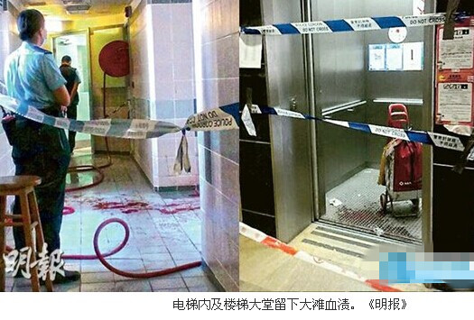 刘姓男子的妻子罗姓妇人拉着手拉车,拖着两名女儿跑进电梯,不料疑凶拔出14英寸(约35.56 厘米)长刀冲入,罗妇拼死挡架护女身中多刀,疑凶逞凶后回家。