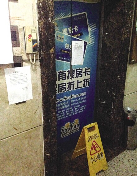 昨天,记者来到“假日芳邻”公寓楼查看,发现电梯处有物业10月21日张贴的温馨提示,写着该电梯严重老化磨损,该型号电梯已经停产,目前物业尚在设法购买对应型号的配件,如果买不到,则可能要报废。