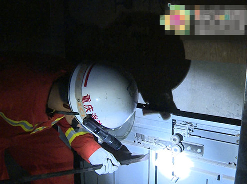 空电梯内传来敲击声 一人被困水泥墙夹缝