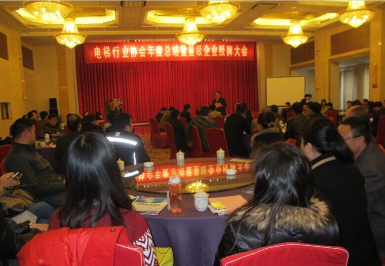 2014年11月12日下午,合肥市电梯行业协会2014年度总结暨星级单位授牌在梅山饭店隆重举行。合肥市政府应急办、合肥市质监局、合肥市民政局的领导出席会议,68家会员单位参加会议,会议由合肥市电梯行业协会秘书处组织召开。会议召开之前,秘书处对行业首次评星举行新闻发布会,通告行业服务星级评审过程及结果。