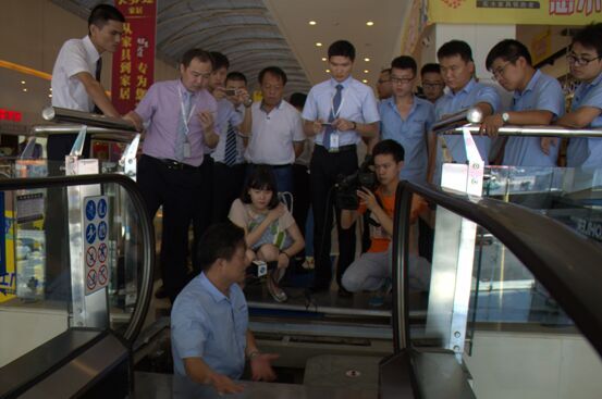 7月30日上午,合肥市电梯行业协会携同安徽立胜机电设备有限公司在居然之家---环宇店现场对在用扶梯进行现场讲解,帮助用户及乘梯人员了解扶梯的基本构造及发现电梯异常时应急处置的方法。