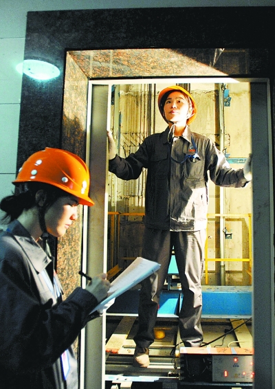 有时电梯需要在运动中检验,女士头发要包扎好,稍有不慎,头发可能被运动部件夹住酿出惨祸。井道密闭,光线不好,戴着安全帽,需要带手电筒认真检查零部件,还要防止坠落,瞬间的疏忽可能致命,尤其遇到问题电梯。
