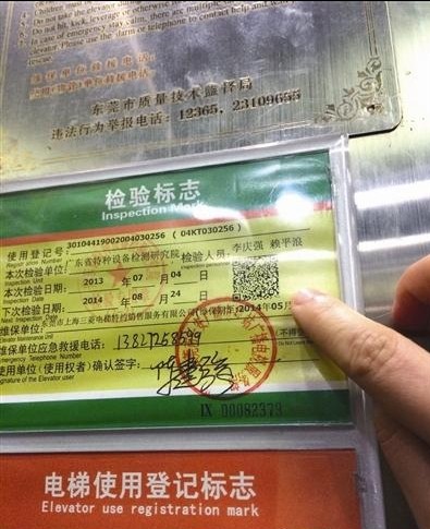 长安镇质监站相关负责人表示,在检验标志上有“二维码”的电梯内,市民若通过扫描后,未能查询到电梯的相关信息,或发现检验标志中的信息与实际情况不符时,市民可以向市质监局特种设备科举报,举报电话为12365。