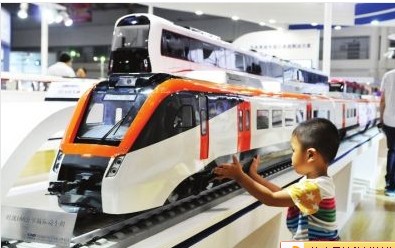 在3号机械装备馆,记者就看到有不少的市民聚集在“中国北车”展位前,这里不仅展出了动车“和谐号”的模型,更展出了未来福州地铁的模型车辆之一。由于福州正在建设地铁,而地铁运营也在近两年就能实现,因此有热心的父母带着三四岁的孩子逛展。孩子见到这辆红色的模型地铁车辆满是欢喜,忍不住伸手去摸一摸。