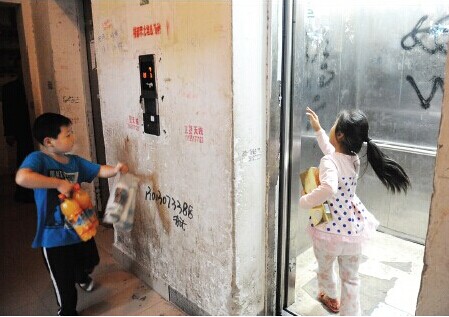 昨天上午,记者来到鸿兴苑小区1号楼1单元,这里的两部电梯都已经正常使用。随后记者进入杨女士被困的电梯,发现电梯里的环境比较脏乱,轿厢壁四周被划出多道痕迹,控制面板也有损坏的迹象,记者未在电梯内看见年检标志。