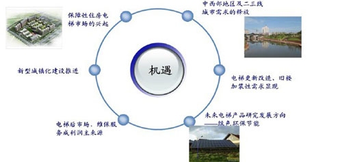 随着我国二三线城市和小城镇的快速发展,城镇化进程的不断推进,特别是国家在今后几年对保障房市场的投入,城市棚户区改造,将使得住宅建设总量依然呈增长趋势,这将带动电梯的需求量进一步增长。因此,我国在今后相当长的时间内还将是全球最大的电梯市场,市场潜力巨大。