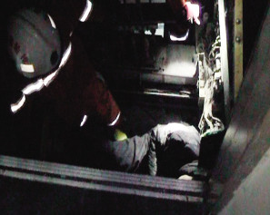 昨天凌晨,一名喝醉酒的男青年突然坠落到某大学宿舍电梯井一楼到二楼之间的电梯轿厢顶上。接到报警后,相关人员联手展开营救。经过一个小时的努力,终于将男青年解救出来。