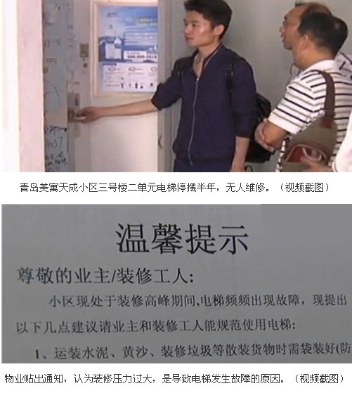 青岛美寓天成电梯停摆半年无人修 业主无奈外出租房