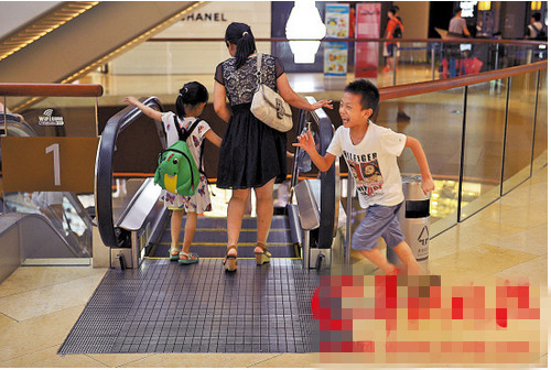 儿童使用手扶梯需家长监管 羊城晚报记者 林桂炎 摄