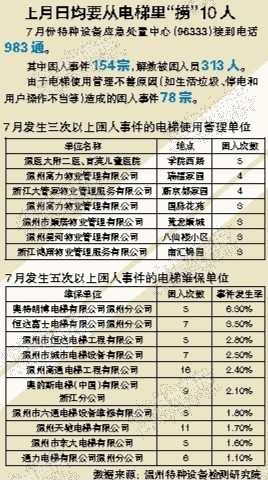 去年,市质监局首次公布了13家进入“黑名单”的维保企业。其中,杭州通达电梯工程有限公司温州分公司就在“黑名单”中,该公司也是今年7月30日杭州新华坊出事电梯的维保单位。温州人民比较幸运,自从质监部门公布“黑名单”后,该公司已退出温州市场。