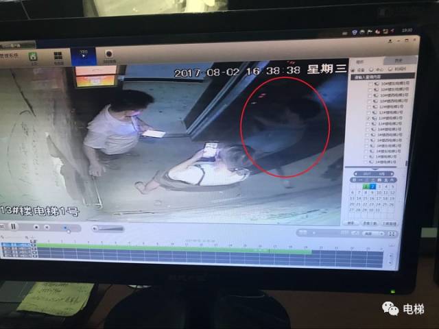 监控显示:8月2日下午4点38分38秒,一个身穿蓝色工作服,手上拎着白色纸袋和一个黑色手提包的人(后被确认为就是维保技师何师傅)进入电梯。他站在监控画面的右边,根据监控,可以判断电梯随后上行。