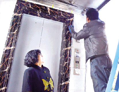 10月30日,在潍城区清平花园小区2号楼1单元的门前,一部崭新的多层住宅电梯十分引人注目,虽然刚建成还未验收使用,仍吸引了不少其他小区的居民前来参观。该单元居民、今年72岁的张玉英正在一楼的电梯门前查看工人的施工进度。这部电梯能够完工,基本上全靠张玉英和老伴韩玉芳负责协调,其中就包括市民最为关注的费用分摊等问题。