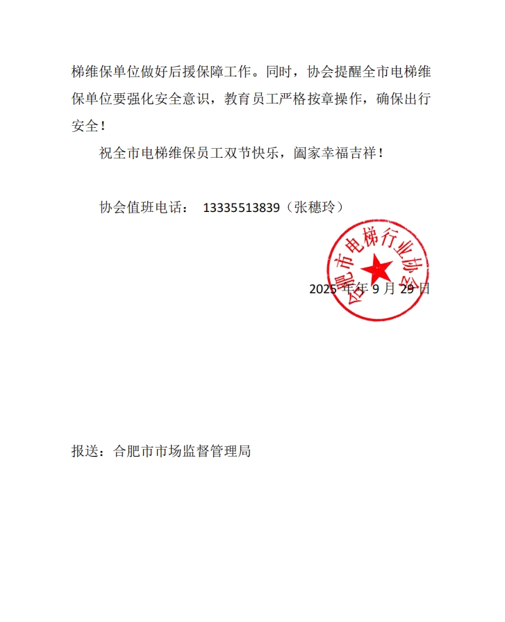关于做好“国庆”“中秋”双节期间全市电梯安全运行保障的通知