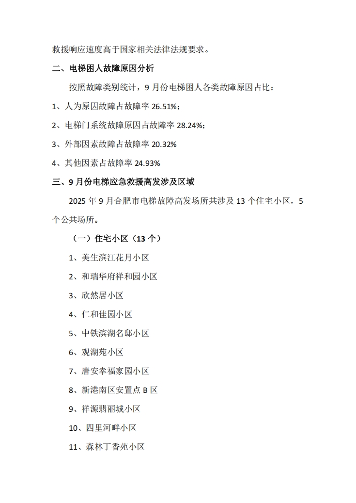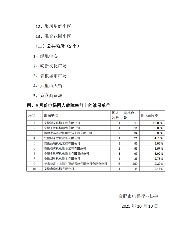 关于全市电梯应急救援高发小区及电梯故 障率前十单位的月度通报