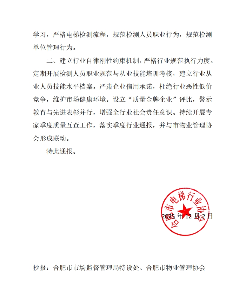 关于2025年度电梯检测质量状况技术诊断行业自律的通报