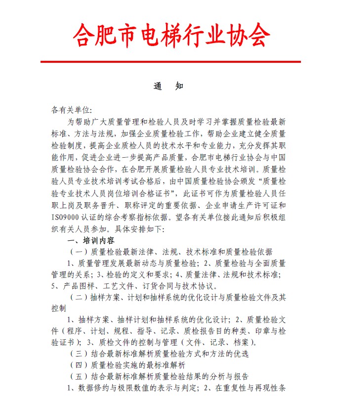 合肥市《关于做好电梯自行检测有关工作的通知》