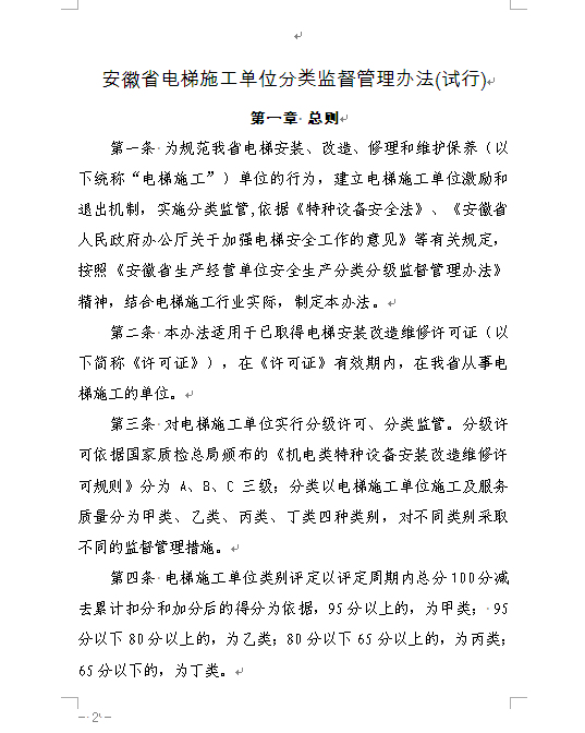 关于印发《安徽省电梯施工单位分类监督管理办法(试行)》的通知