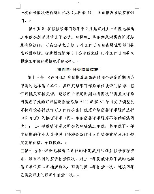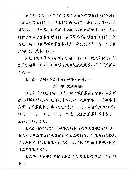 关于印发《安徽省电梯施工单位分类监督管理办法(试行)》的通知.doc