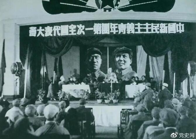 1949年4月11日,中国新民主主义青年团第一次全国代表大会召开。图为大会会场。