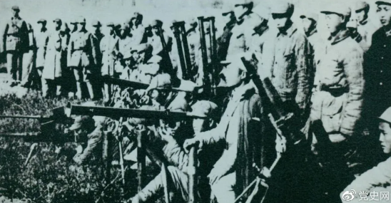 1945年10月至11月,刘伯承、邓小平率部取得了平汉战役的胜利。图为平汉战役参战部队及缴获的武器。