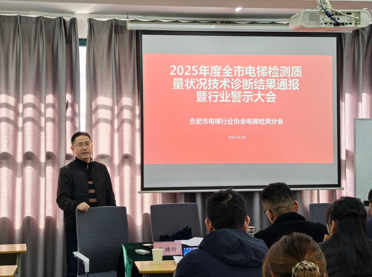 在警示大会上,合肥市电梯行业协会电梯检测分会会长胡毓铭宣读了市局《关于2025年度电梯检测质量状况技术诊断结果的通报》,正式向全行业公布了年度技术诊断的总体情况和主要结论。