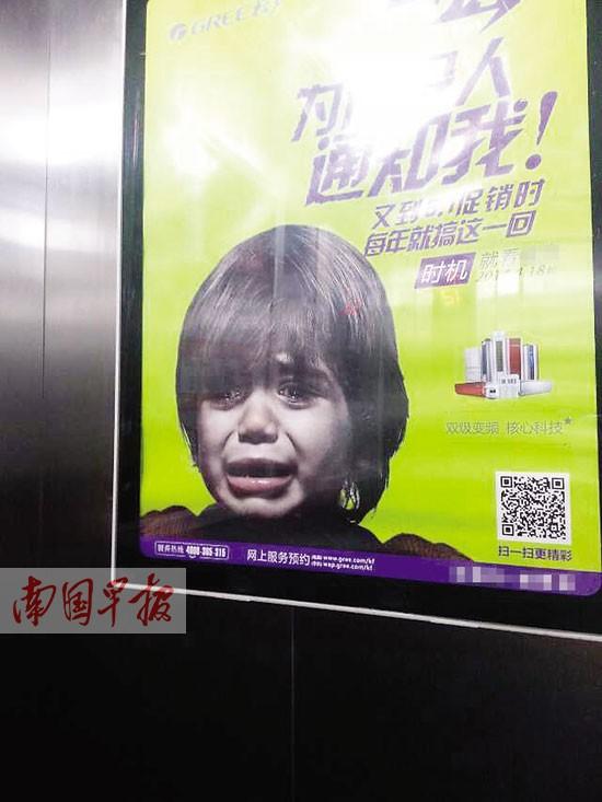 电梯广告画面恐怖吓哭女童 父亲无奈撕掉广告(图)