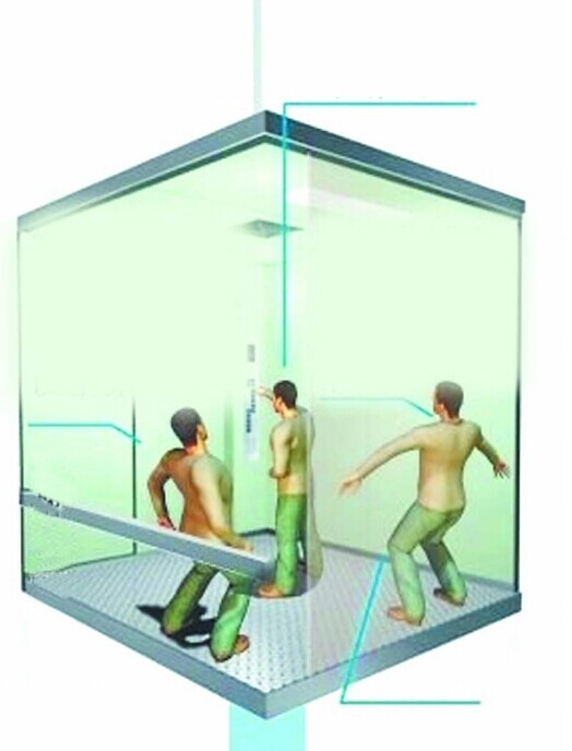 3.如电梯内没有把手,则双手反撑电梯内墙,然后整个背部跟头部紧贴电梯内墙,以固定身体。