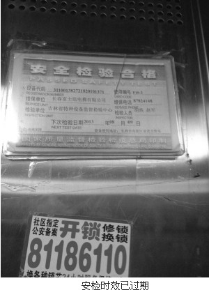 记者发现,在踏查的南城家园小区几栋居民楼的电梯的下次检验日期均为2013年8月9日。针对此事,记者咨询了标签上标明的电梯维保单位长春富士达电梯有限公司。