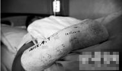 同学们在小张的石膏板上写满了祝福 记者 黄利健 摄