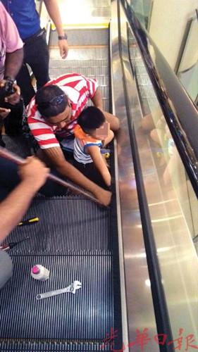 男童蹲坐扶手电梯上 右手被卷入伤势严重(图)