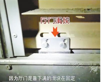 厅门下方固定靠滑块,若受到大的冲击,容易撞开门(资料图)。