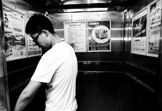 小区的电梯间里三面都悬挂着广告牌 记者 马昭 实习生 张宏涛摄