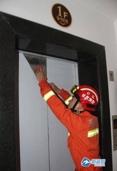 新蓝网--中国蓝新闻客户端7月6日讯(浙江之声记者洪小燕 通讯员安丽娜报道)今天上午10点左右,台州市经济开发区东京湾小区的刘先生买菜回来坐电梯上楼的时候,电梯突然发生故障,被卡在一楼和二楼之间,刘先生赶紧按报警铃求救,可回应的他们只有电梯的提示:“请耐心等待”。按了半个小时警铃没用,随后刘先生立即拨打110、119求救,但是在电梯里手机没有信号,根本打不出去。试了好多次,也没法打给别人求助。无奈之下,他强行掰开电梯门,从缝隙将手机伸出门外报警才得救。