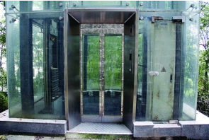 记者看到,这样一部直上直下的观光电梯,虽然多年未用,但也没有破败不堪,梯身是全玻璃结构的,玻璃也无破损。可能是因为电梯井常年积水,轿厢升到了半空中,记者按电梯按钮没有任何反应。电梯井内的积水达十几厘米,据了解,这一方面是最近处于汛期,电梯门缝等位置有渗水。另外,早些年电梯井就一直有水,也没有清理干净。