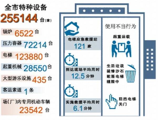 电梯是社会关注度最高的一类特种设备,陶镇广表示,2012年,广州成立电梯安全运行监控中心,目前全市11个行政区已布设电梯应急救援站121家。据统计,全市电梯应急救援到达现场平均用时12.5分钟,现场实施救援平均用时6.1分钟,救援效率在全国大中城市中居于前列。