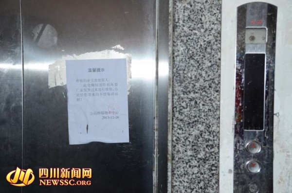 2013年12月26日因电梯报警器连续响彻4天未停,物管方将其关闭,并贴出提示