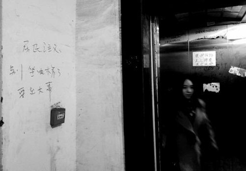 3月18日,记者跟随刘先生再一次来到海兴花园小区9号楼。在1单元电梯门边的墙上,一行大字映入眼帘:“大家注意,别再坐电梯了,要出大事啊!”楼内居民表示,虽不知是谁写的,但的确说出了他们的心声。