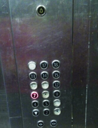 昨日上午,记者在临湖社区吉园里走访一圈,就发现了几十部受损电梯。而这些电梯故障情况并不相同。受损电梯中大多都是按钮被抠掉。在记者走访的几十部电梯中,按钮被抠掉的情况最多。其中24号楼两个单元楼内都有一部电梯18层按钮被抠,25号楼一部电梯17层、18层电梯均遭损坏,而有些电梯开闭按钮也遭到了人为破坏。破坏最为严重的要数41号楼1单元内的一部电梯,18个按钮被抠了6个。