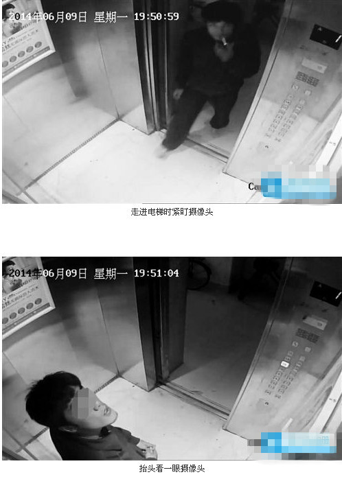 根据李先生提供的监控录像,记者看到在9日19点50分59秒,一名年轻小伙叼着一根刚被点着的烟走进了电梯内。与常人不同的是,这名年轻小伙在走进电梯时,并不是先按下电梯内的楼层键,而是盯着电梯内的监控摄像头看了一秒钟。随后,又在楼层键上的14和12两个数字之间迟疑半秒后,按下了12层。