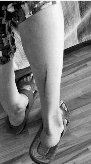 记者了解到,上月9日,小区A1座1号电梯曾发生过事故。据王女士介绍,当天她60多岁的婆婆带着王女士1岁半的女儿乘电梯上楼,突然在一阵火花之后,电梯顶板全部掉了下来,砸到老人和孩子身上,把俩人的胳膊和腿都划伤了(如图),随后电梯又冲到26层顶层。发生故障后,老人赶忙按电梯内的应急电话,不料10多分钟都没人接,老人和孩子在漆黑的轿厢里等了好久才被救出。