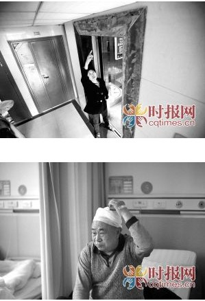 业主在单元楼内等电梯,电梯还没到,电梯门框顶部的大理石瓷砖却先到。瓷砖从两米高处脱落下来,业主李大爷头部被砸出一个口子,老人当场晕倒,送医院后缝了10针。昨天,记者来到事发小区,得知物业公司已经开始对所有电梯门框进行检查。