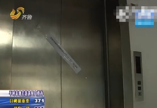 据山东广播电视台齐鲁频道《每日新闻》报道,小区业主一边喘着粗气,一边向记者抱怨,10号中午的时候,小区的15部电梯就突然停止了,电梯口还被贴上了质监局的封条,随后就收到物业通知,质检部门要求电梯重新注册登记,在三天时间,电梯不能使用。