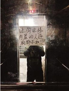 李先生介绍,11日晚上,他回家时注意到电梯里有一摊狗尿,气味令人作呕。次日上午,他出门时,发现有人往电梯里喷了不少香水,但尿骚味还是特别浓,两股味一混合,更难闻。当天下午他回家时,一进电梯,就看到里面贴了一张告示:“让狗电梯内尿的人连狗都不如!”
