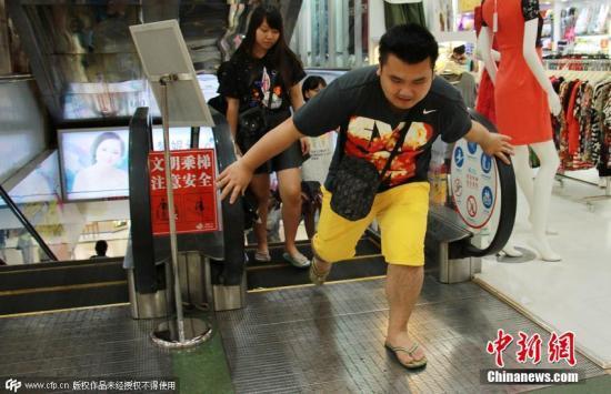 2015年7月28日,海南省海口市明珠广场,众多市民逛街购物乘坐手扶电梯时变得格外小心。图片来源:CFP视觉中国