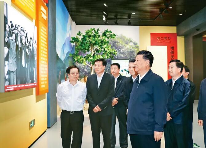 2019年5月20日至22日,中共中央总书记、国家主席、中央军委主席习近平在江西考察,主持召开推动中部地区崛起工作座谈会并发表重要讲话。这是习近平在赣州市于都县中央红军长征出发纪念馆会见于都县的红军后代、革命烈士家属代表。新华社记者 鞠鹏/摄