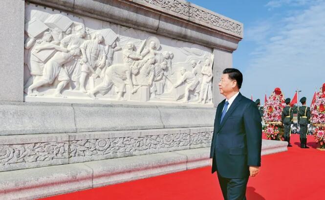 2020年9月30日上午,党和国家领导人习近平、李克强、栗战书、汪洋、王沪宁、赵乐际、韩正、王岐山等来到北京天安门广场,出席烈士纪念日向人民英雄敬献花篮仪式。这是习近平瞻仰人民英雄纪念碑。新华社记者 岳月伟/摄