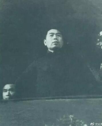 图为周恩来在中国共产党第七次全国代表大会上发言。